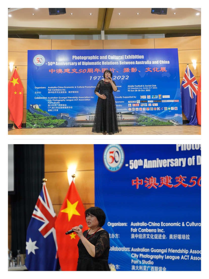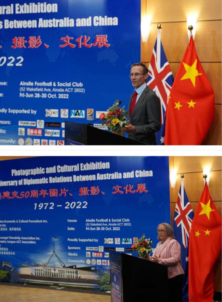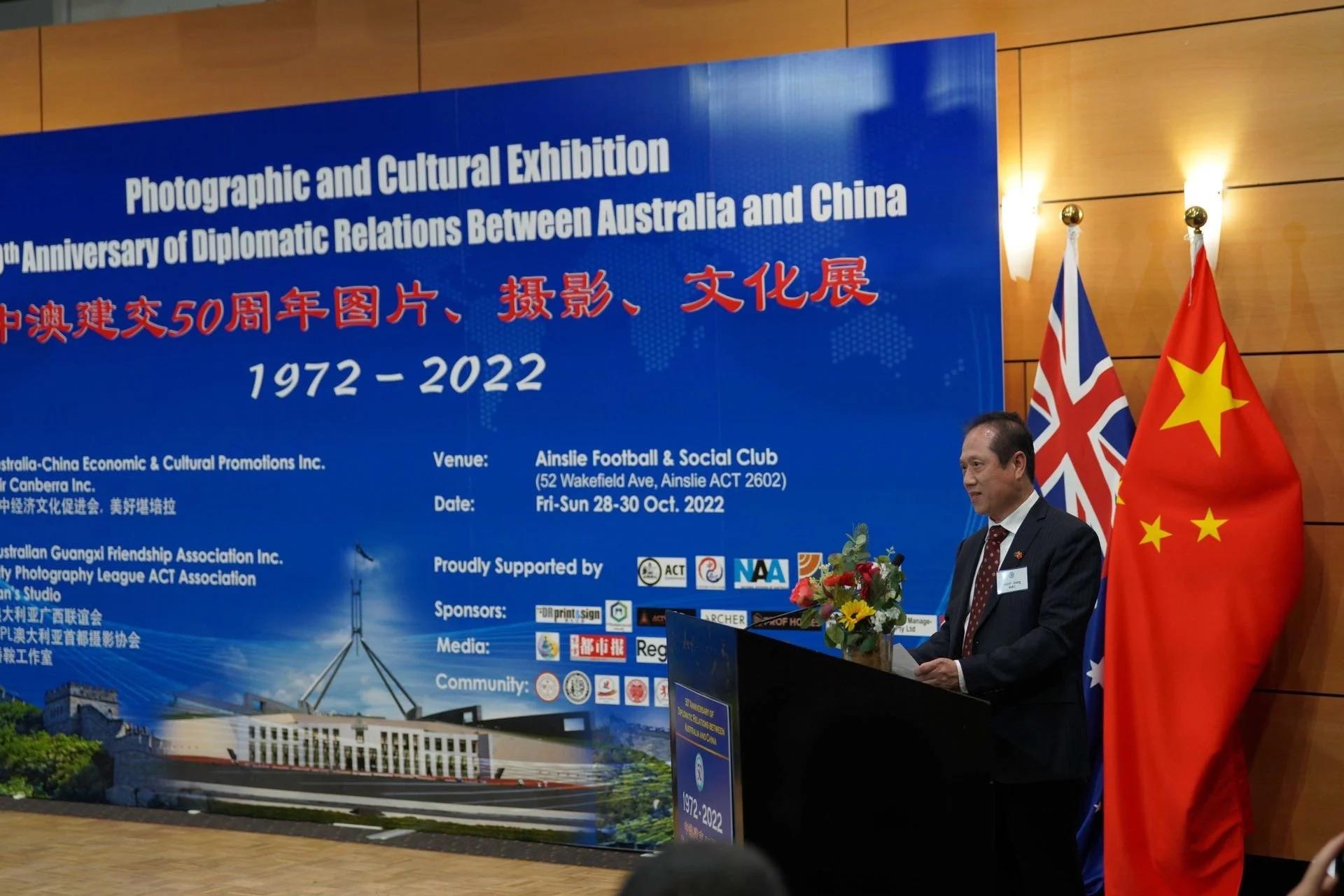 《中澳建交50周年图片、摄影和文化展》于2022年10月28-30日在堪培拉隆重举行。此次展览由澳中经济文化促进会和美好堪培拉“Fair Canberra”主办。并由澳大利亚广西联谊会、首都摄影协会和潘鞍工作室承办。