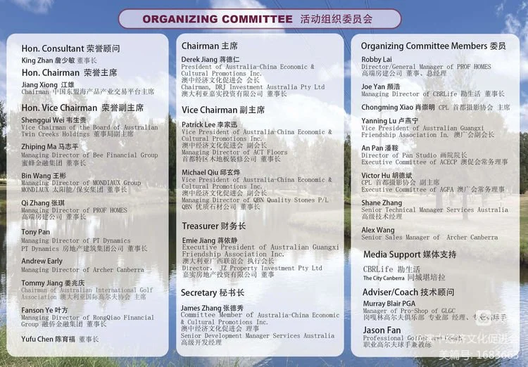 赛事在组委会所有成员的努力下顺利开展。组委会主要由商界、企业界精英组成。
