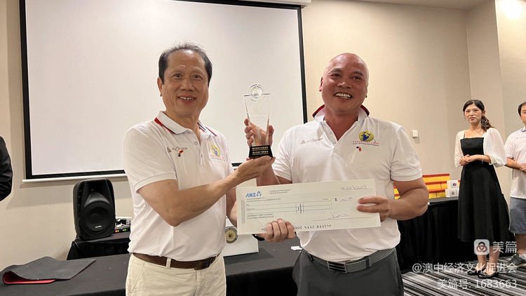 给净杆亚冠Shane Zhang颁发奖杯🏆和奖金