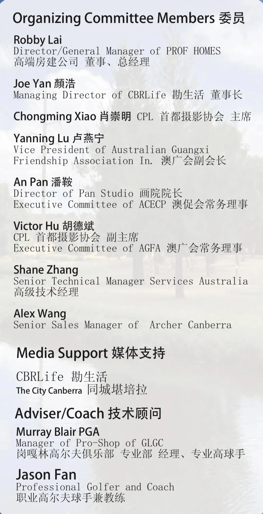 本次活动的组织者为澳中经济文化促进会会长蒋德仁先生,活动对于增进澳中友谊具有很大作用。在各方的支持下,友谊与快乐这两个关键词贯穿整场比赛,活动举办取得了圆满成功。赛后在堪培拉举行了颁奖晚宴,共有100多人出席了活动,大家欢声笑语,把酒言欢,魔术、独唱表演、抽奖活动等,人们共同感叹并庆祝此次活动的圆满成功。