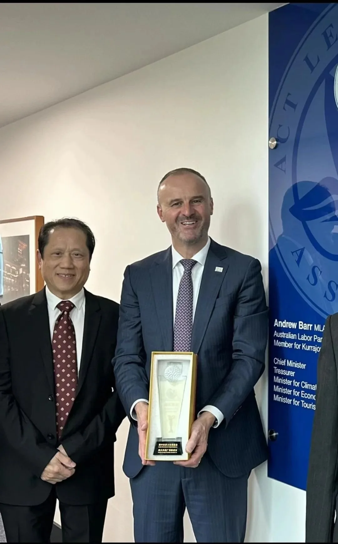 首席部长Andrew Barr会见蒋德仁先生—主办堪培拉“首界澳中友谊杯高尔夫邀请赛”