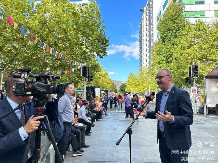 首都领地堪培拉首席部长安德鲁·巴尔(Andrew Barr),在开幕式上讲话并接受媒体采访